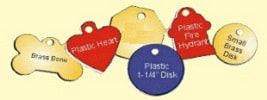 Basic Plastic Pet Tag in a variety of shapes and colors. Long wearing rotary engraving will not rub off like laser engraved tags. Each tag is riveted and comes with your choice ofa split ring loop or an "S" hook to attach securely to your pet's collar.